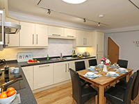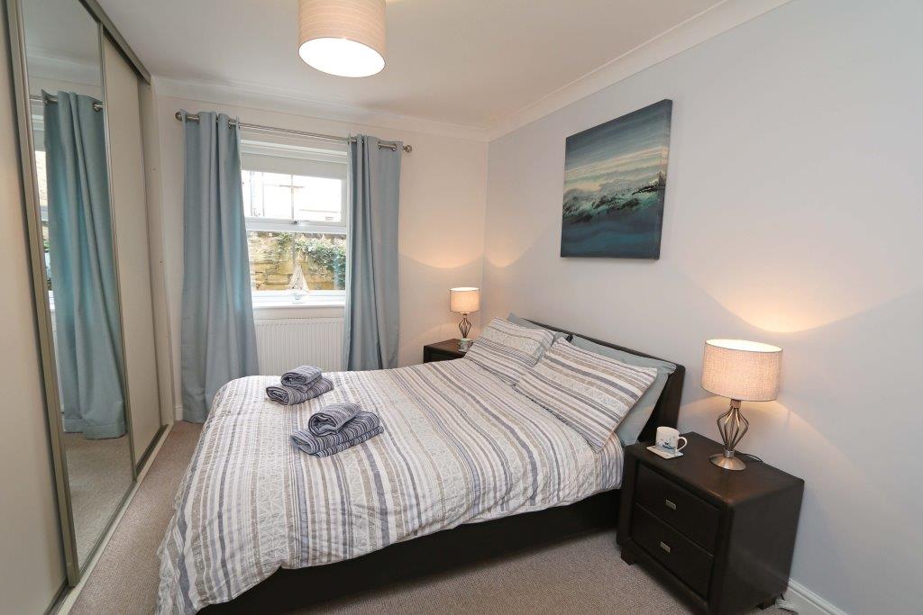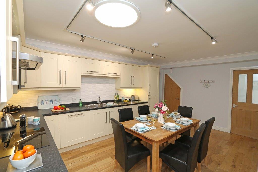 Ground floor – Ultra modern dining kitchen with wooden floor and halogen lighting. Double bedroom. Twin bedded room. Both bedrooms have built in wardrobes. Family bathroom with over-bath shower and WC. Small private rear courtyard – a sheltered area to relax.