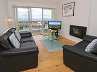 First floor – Fabulous lounge with contemporary wall mounted electric fire and astonishing views.